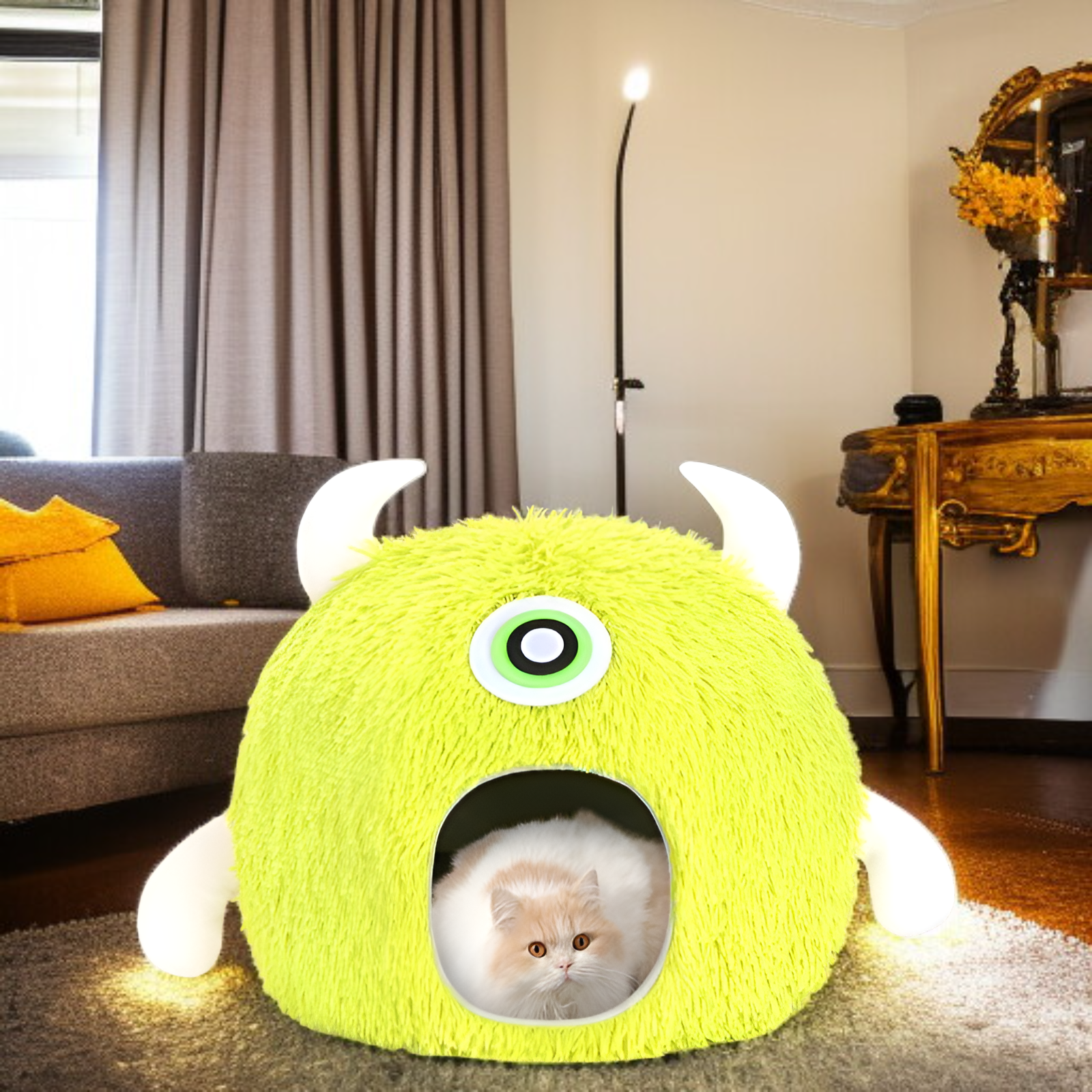سرير للقطط لفصل الشتاء، شبه مغلق، دافئ مع تدفئة كهربائية USB.